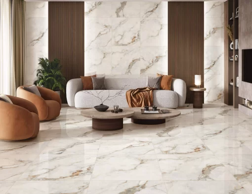 Arabescato Oro Marble Look Glossy Porcelain Tile is a luxurious porcelain tile that beautifully replicates the elegance of Arabescato marble. Featuring a crisp white background with striking gray and gold veining, it adds a sophisticated and timeless touch to any space. The glossy finish enhances the depth and richness of the design, creating a polished and high-end aesthetic. Water-resistant, scratch-resistant, and easy to maintain, this tile is ideal for floors, walls, and accent areas in both residential and commercial settings, offering a perfect blend of beauty and durability.